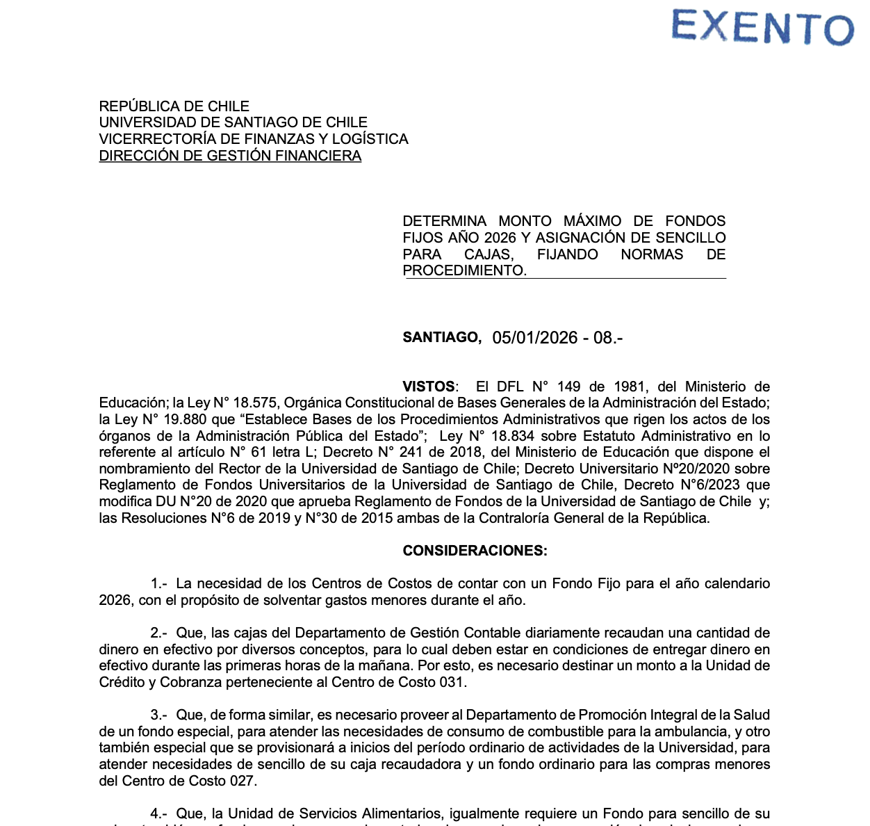 En este espacio podrás revisar y descargar las resoluciones administrativas vinculadas a materias de gestión financiera y de gestión de personas, dictadas en el ámbito de la Vicerrectoría de Finanzas y Logística de la Universidad de Santiago de Chile (VRIFYL), correspondientes al año 2026.